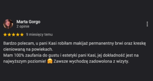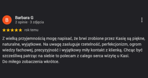 Rezultat jest subtelny. Brwi mają wyglądać jak Twoje, tylko bardziej uporządkowane, pełniejsze i spójne.